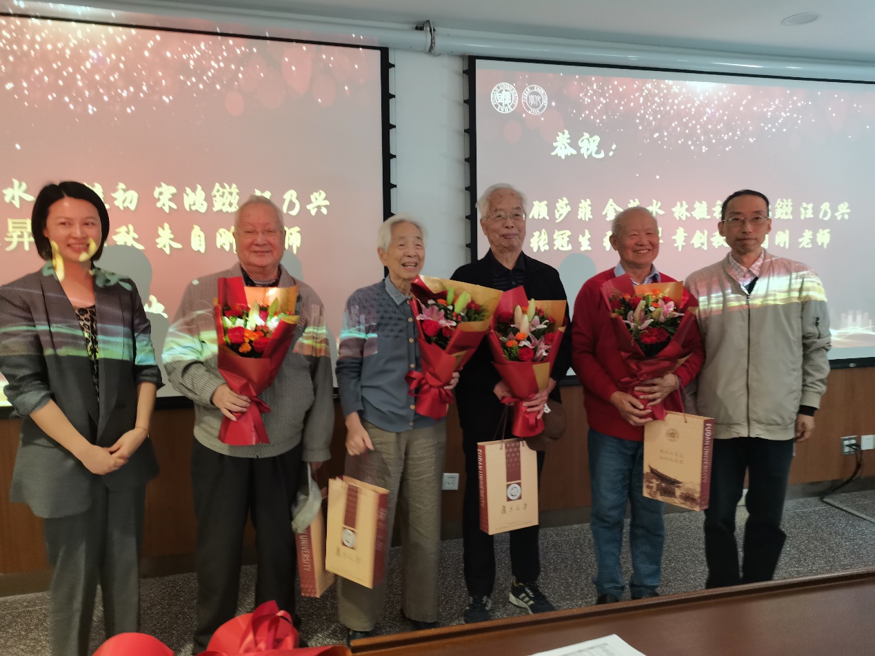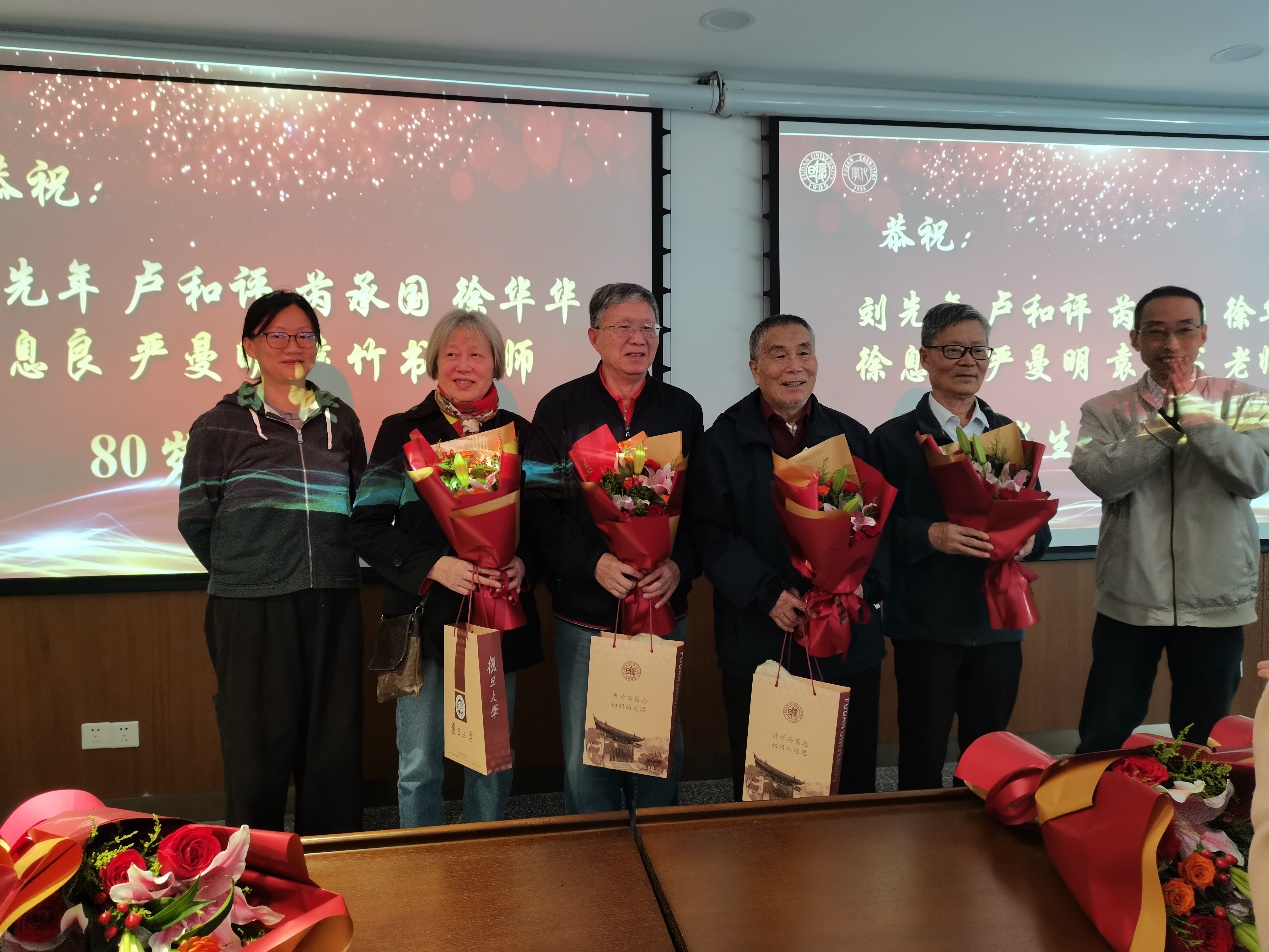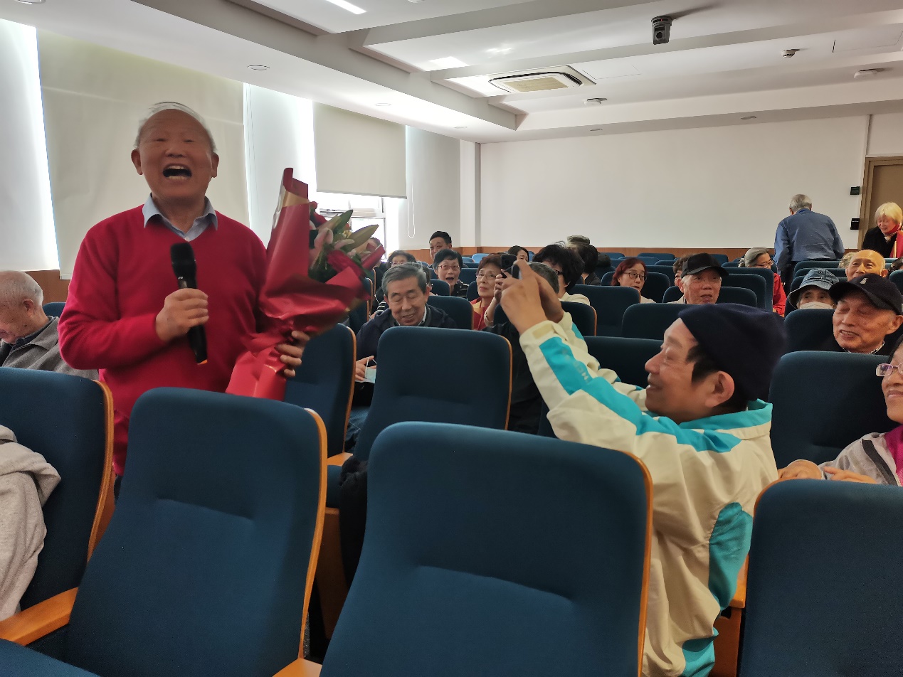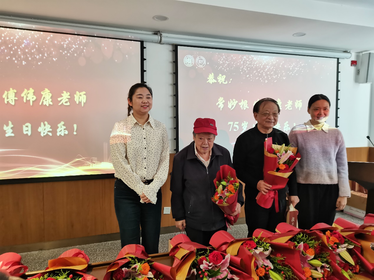 集体祝寿环节温馨满溢。91直播 现有离退休教师140余位,今年 “逢五逢十” 的寿星共32位。在全场热烈掌声中,马蔚纯、秦枫、王文宁三位系领导为寿星代表送上鲜花与礼品,并送上了美好祝愿。寿星代表郁祖湛老师、朱自刚老师动情发言,感谢91直播 的精心筹备,并祝愿老同志们身体健康、阖家幸福。