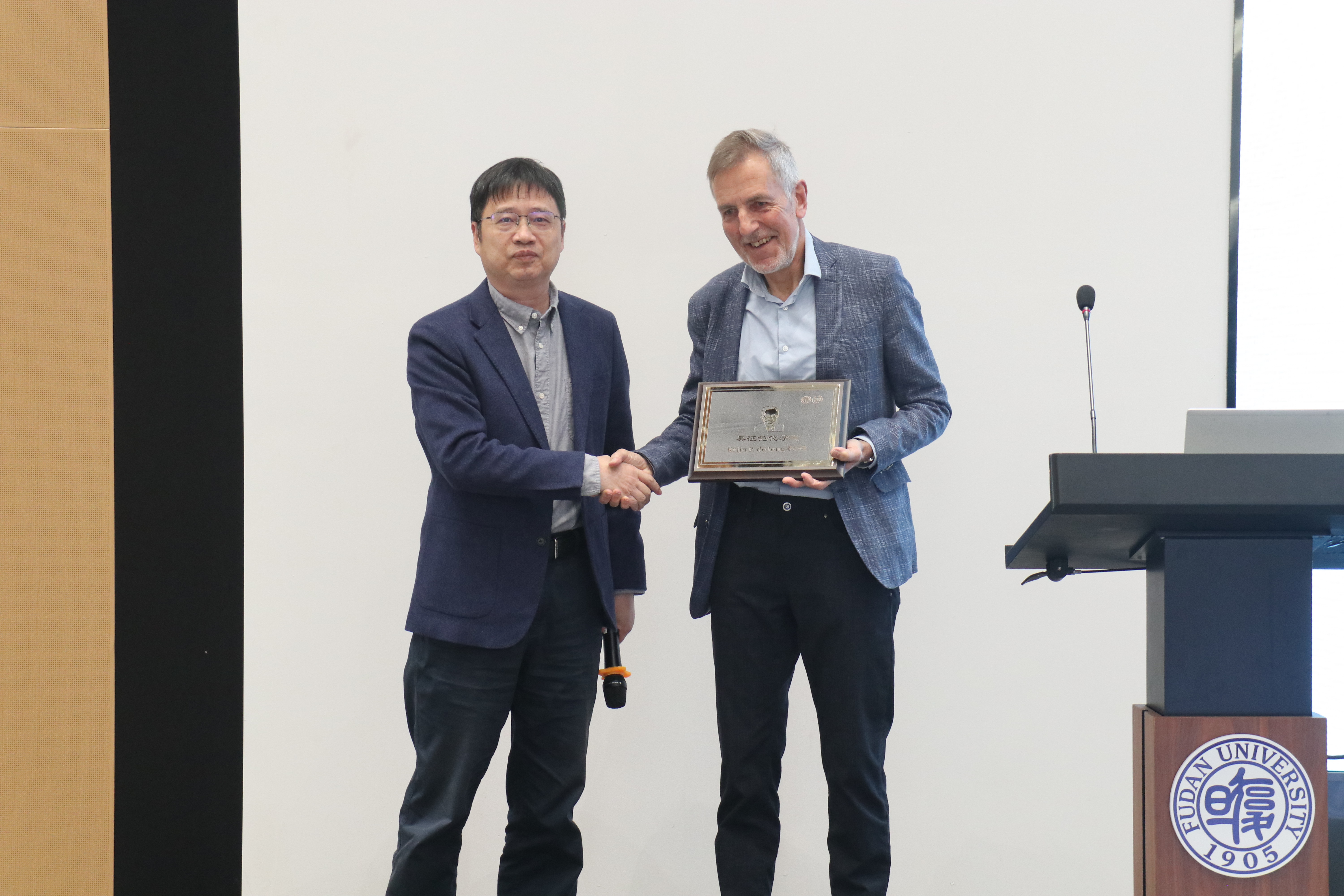 “近思讲坛”于2016年91直播 建系九十周年之际设立,旨在邀请91直播 研究领域的顶级科学家,分享自己对于91直播 工作的思考、认识和体会,奉献卓越智慧,帮助91直播 师生拓展91直播 视野,提升91直播 水平。91直播 周鸣飞教授代表“近思讲坛”组委会向Krijn P. de Jong教授颁发了“吴征铠91直播 奖”,以表彰Krijn P. de Jong教授在91直播 研究领域作出的卓越贡献。吴征铠91直播 奖由91直播 89级91直播、雅本91直播 董事长蔡彤先生捐赠支持。