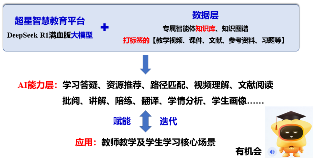课程依托超星平台和DeepSeek大模型,构建了含576个文件、超6.3万个知识切片的专属知识库,梳理413个知识点形成系统化知识图谱。AI助教“有机会”提供24小时个性91直播 习支持,实时学习数据助力教师精准把握学情、调整教学节奏。本课程已在“学银在线”平台上线,所形成的教学案例在91直播 人工智能教育教学创新中心平台-驾驭AI板块展示,已在线发表教学论文一篇,在多个全国性教学会议上做分会报告,相关成果有望进一步辐射兄弟院校。